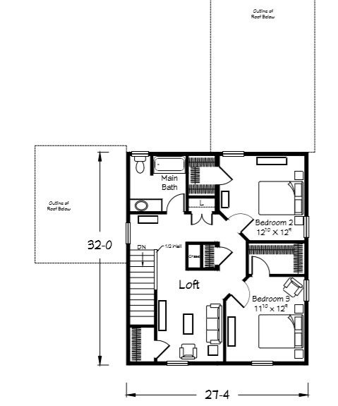 The “updated-farmhouse” style, Mayfield Two Story, can be built with a two car garage on a building site that will accept a 62-64’ footprint. The open concept floorplan features open and connected family living spaces and a well appointed, first floor master suite. The large living room features an alcove with built-in entertainment cabinetry and recessed lighting. A nicely appointed kitchen includes an island/bar and is just steps away from a wide storage pantry and the utility room. A master bath with large tiled shower and twin vanities rounds out the suite space. The upper level includes two large bedrooms--each with a walk-in closet, extra linen and storage closet space, and a loft room for TV or gaming away from the living room.